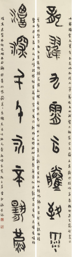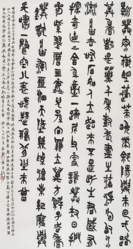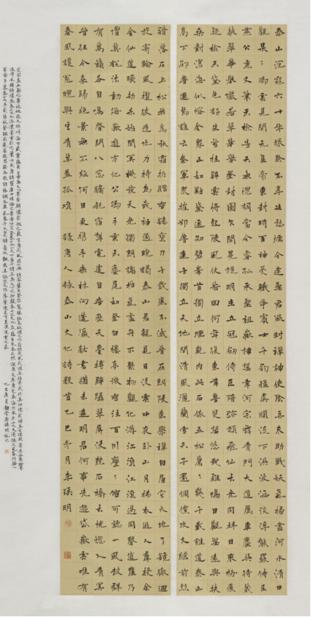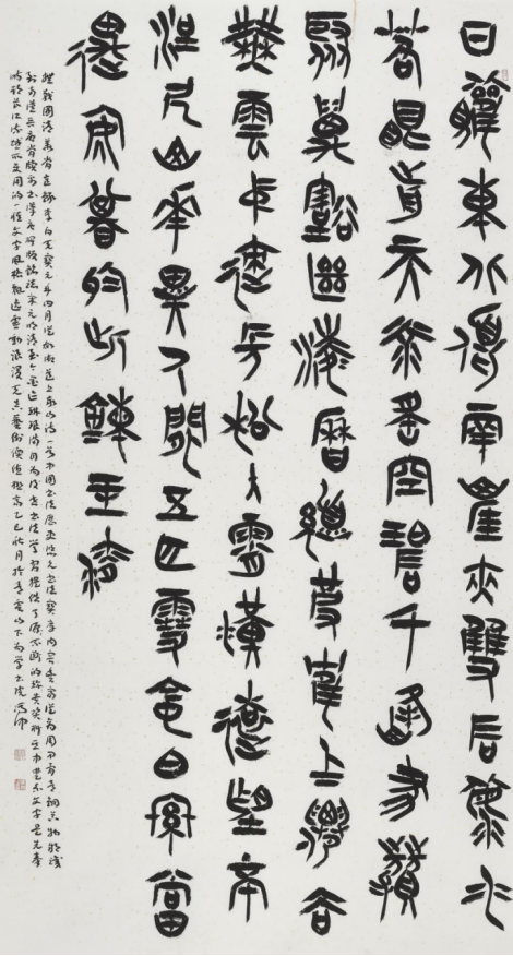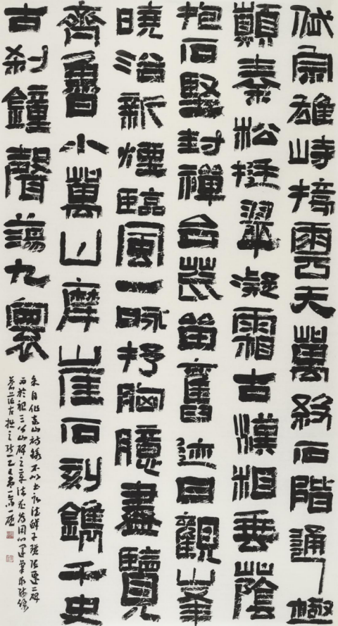 本次入选作品展,以文物守护、书道传薪为精神内核,植根泰山世界自然与文化双遗产之厚壤,承续经石峪摩崖刻石“大字鼻祖”之千古风骨,自全国应征佳作中精择四十件精品汇展于此。参展诸作,皆以泰山诗文、家国襟怀、文化颂赞为题,篆隶楷行草五体纷呈,风格气象万千:笔墨沉雄苍劲,章法雍容典雅,既守泰山摩崖大字之古拙神韵,又融当代书家之艺术襟抱,文心与墨韵相融,风骨与意趣共生。